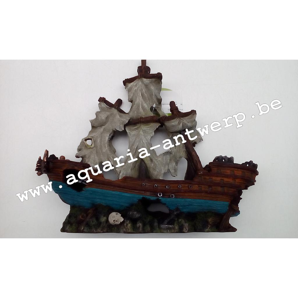 aqua deco ship wreck white sails 35x9x29cm h