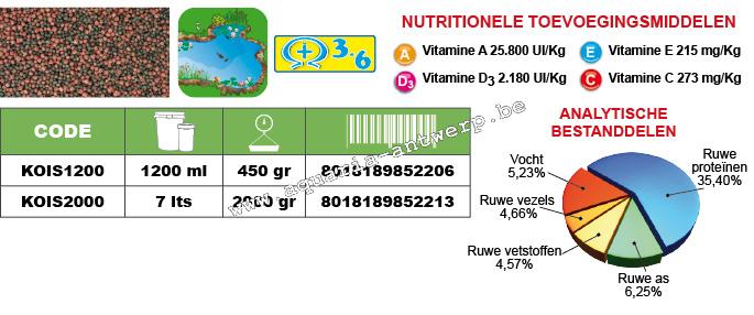 Complete granulated feed for ornamental pond fish particularly suitable for Koi fish, it is enriched with ingredients that enhance the splendid colour of this kind of fish.